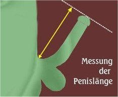am Bauch auf den unteren Penisschaft aufsetzt und bis zur Spitze der Eichel misst.