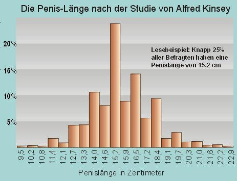 zwischen 14 und 16,5 cm lang ist. Ein inch entspricht 2,54 cm. Der bei der Untersuchung von Kinsey am häufigsten auftauchende